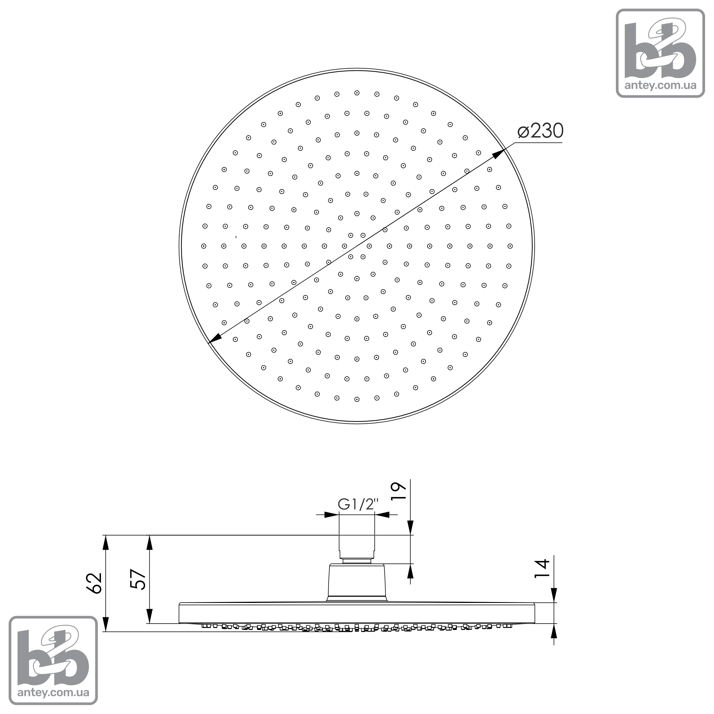 | Діаметр верхнього душа | 230 мм |