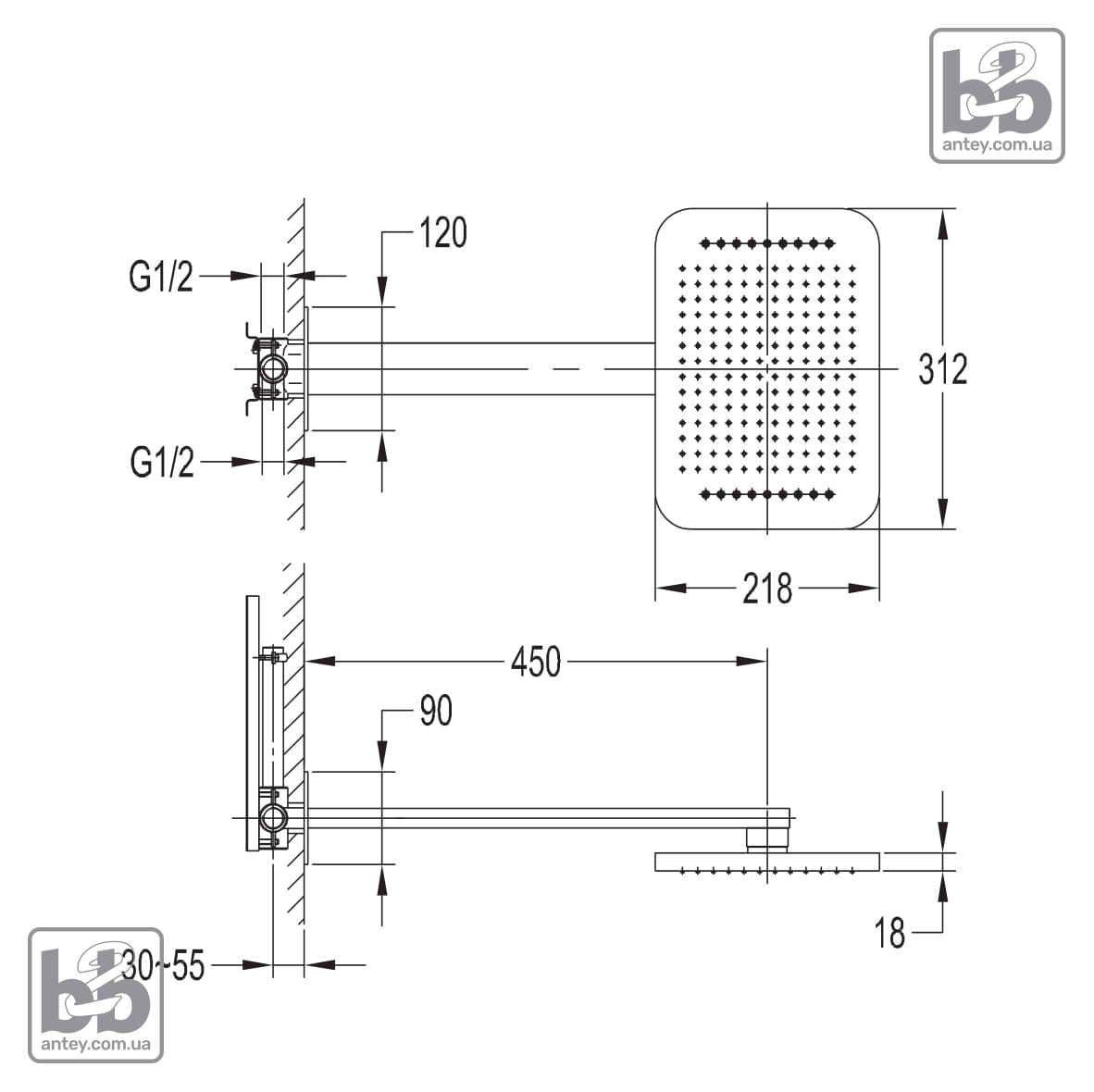 | Вид сантехнічного виробу | лійка верхнього душа |