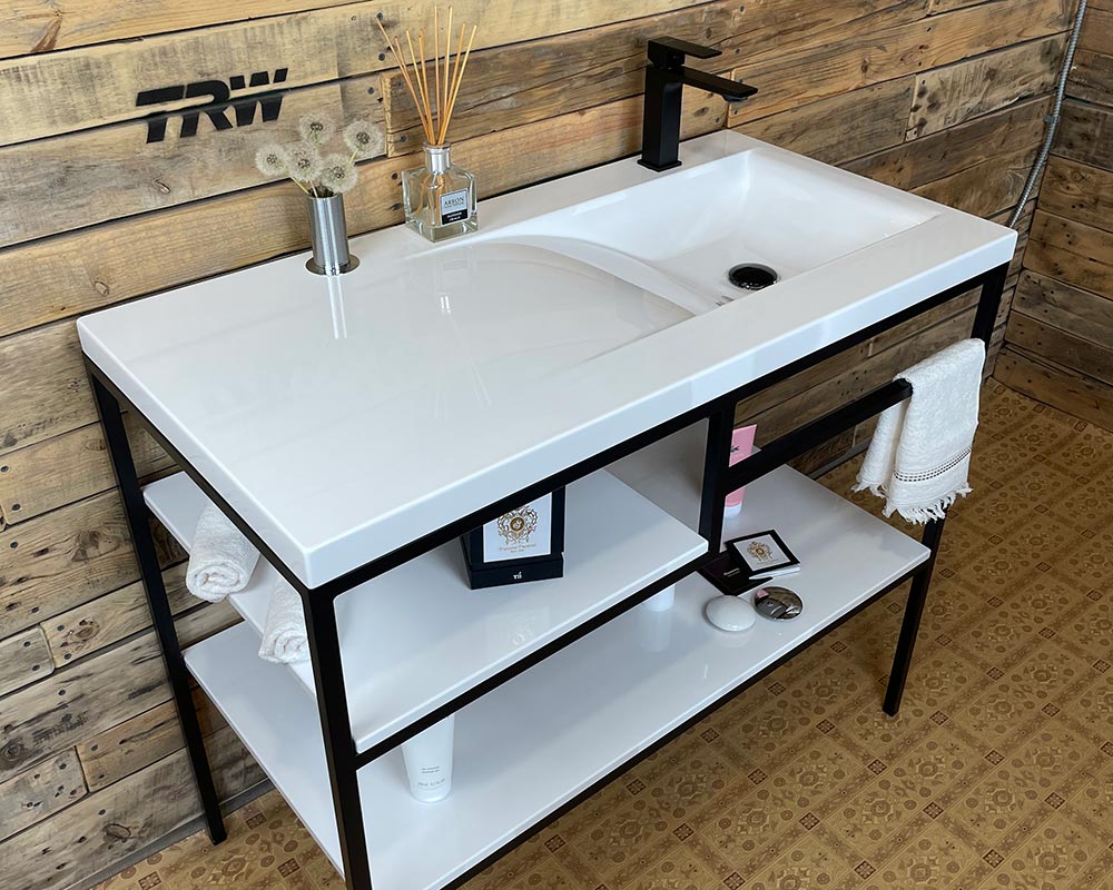 Тумба «Сицилія» для ванної кімнати виготовлена з високоякісного металу, перетин 20х20, товщиною 1,25мм, оброблена спеціальною грунтовкою та окрашена двома шарами спеціальною фарбою для агресивного середовища, що дозволяє використовувати наші меблі в стилі LOFT у понад вологому середовищі, вона стійка до змін вологості так і до змін температурних режимів.
