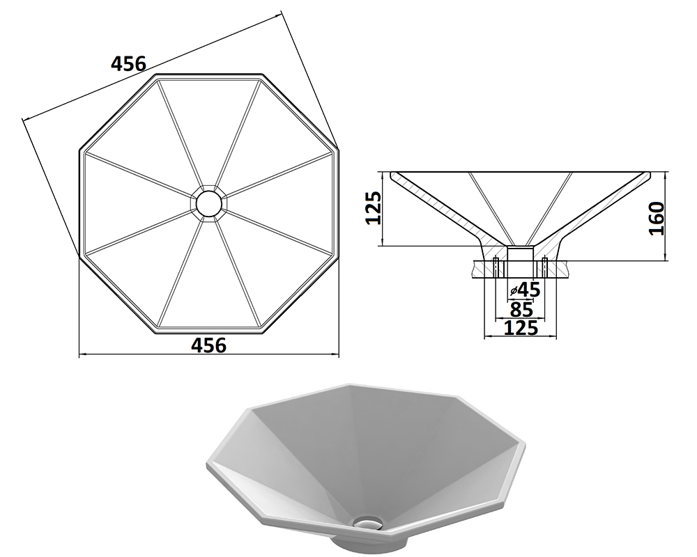 Умивальник «Сиріус» виконаний у вигляді восьмикутника, що виглядає дуже незвично і неординарно для сантехнічних виробів. Завдяки своїй унікальній формі умивальник «Сиріус» виглядає скоріше, як частина декору, ніж побутовий предмет. Його форма зі смаком доповнить шикарний інтер'єр Вашої ванної кімнати.