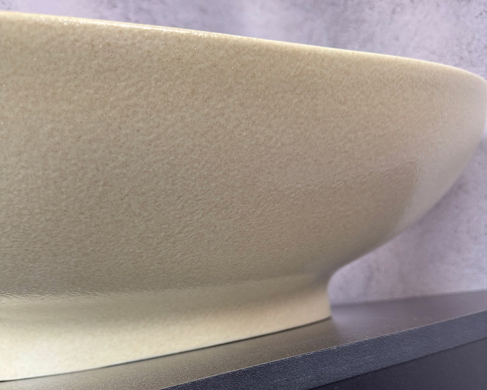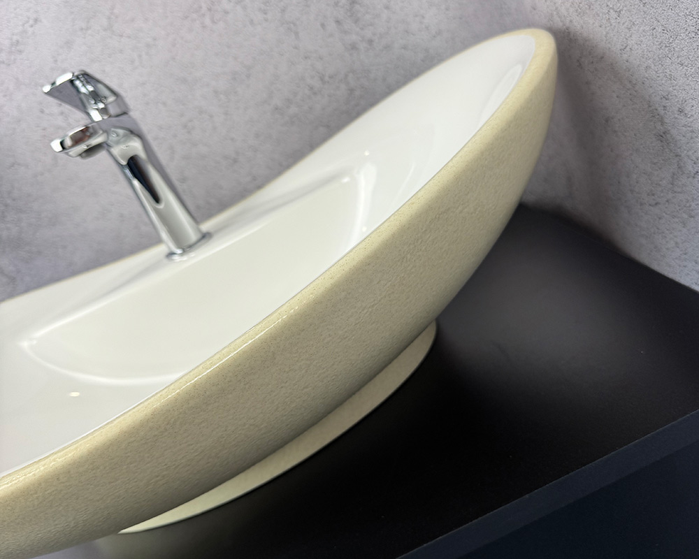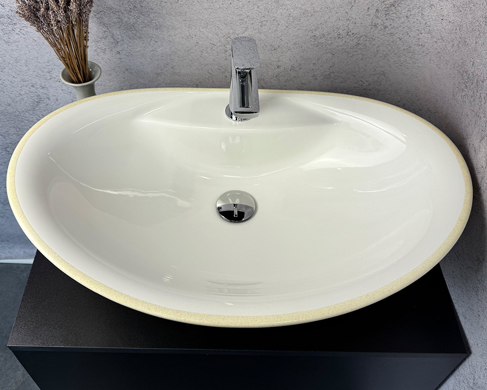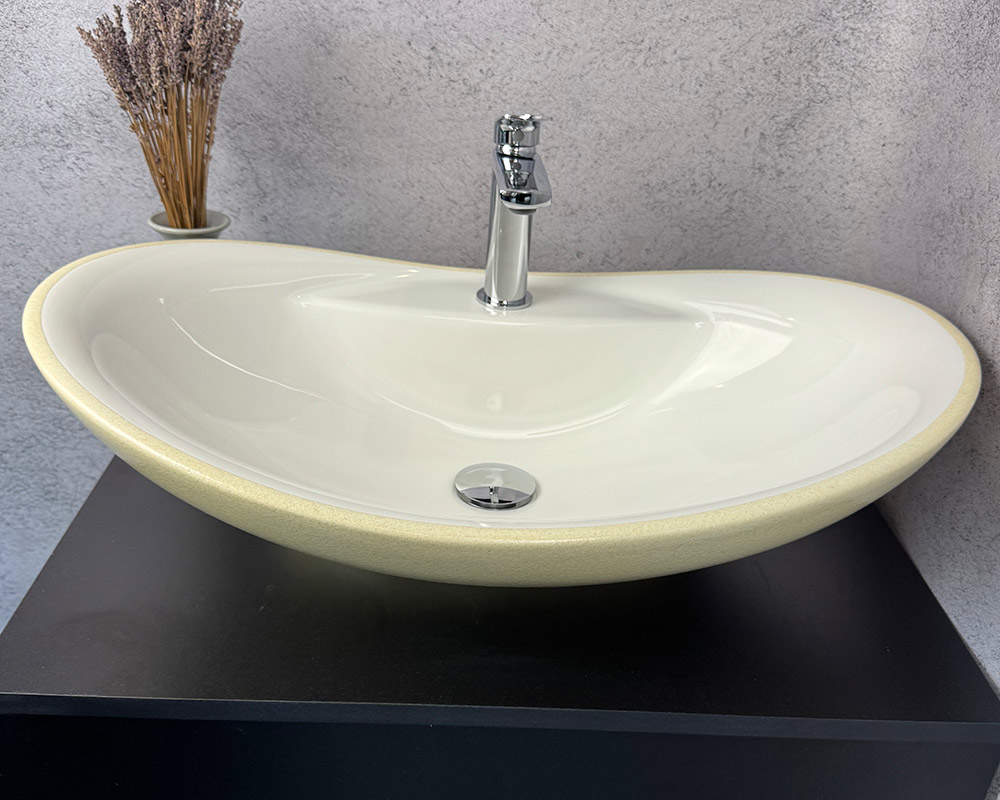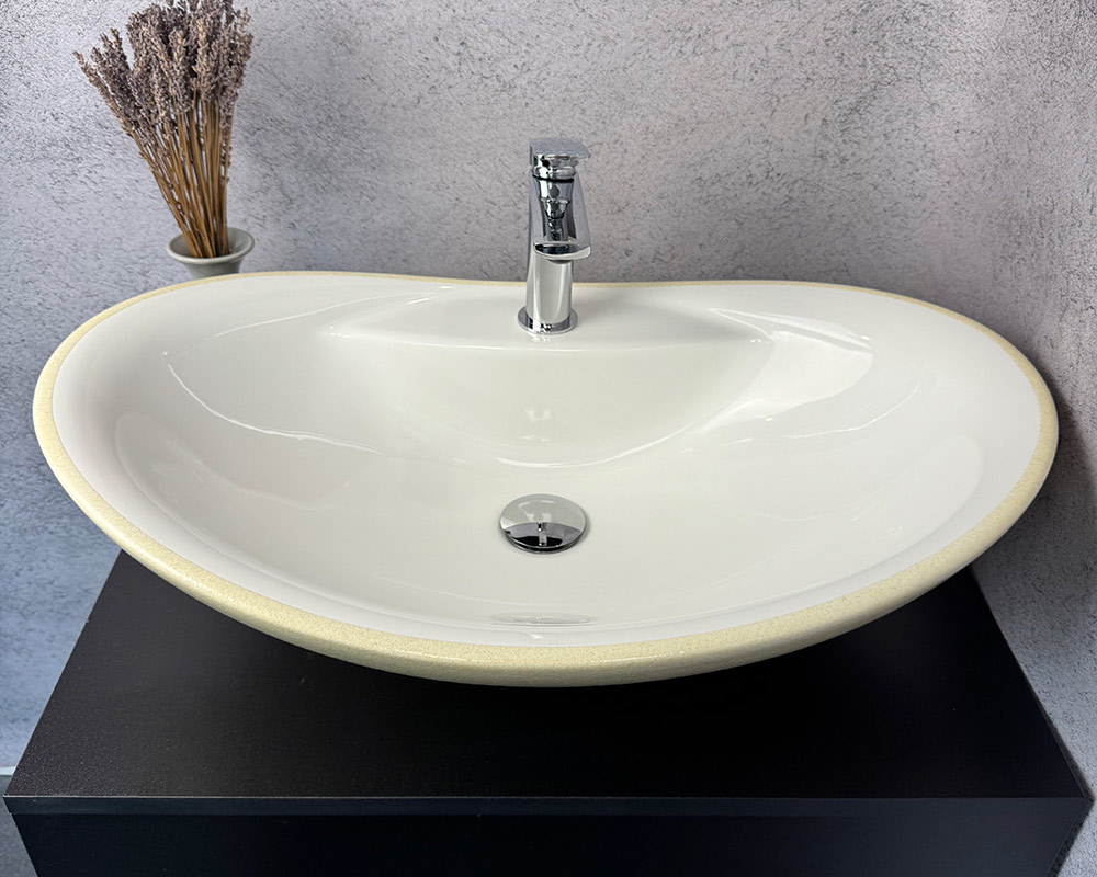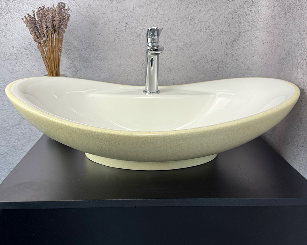 Колір умивальника — білий всередині зі світло-коричневими вкрапленнями ззовні, що створює ефект піщаного відтінку. Цей відтінок виглядає дуже натурально та м'яко, як раз для Вашої ванної кімнати.