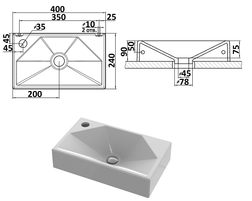 «Меркурій» - це поєднання простоти і розкоші одночасно. Ця малогабаритна раковина стане відмінним доповненням навіть до найменшої ванної кімнати. Звичну, прямокутну форму умивальника, підкреслить його оригінальна чаша у вигляді граней.