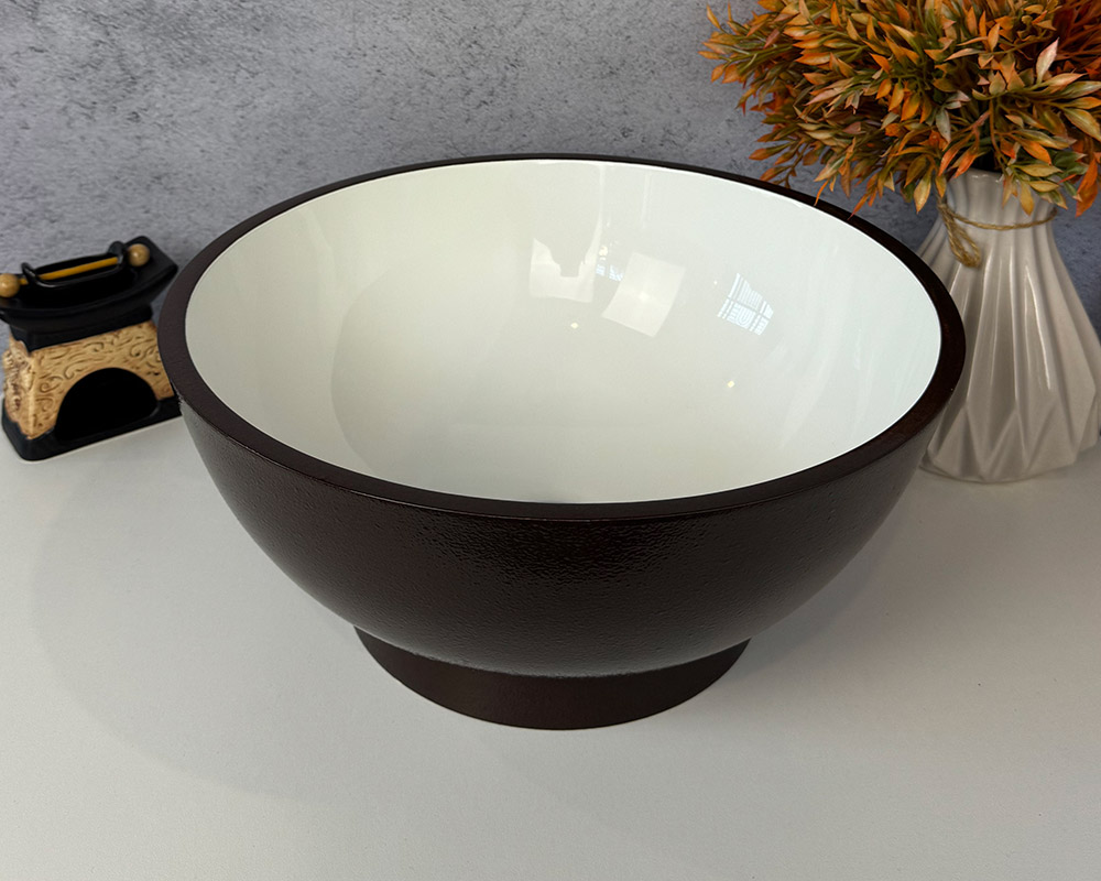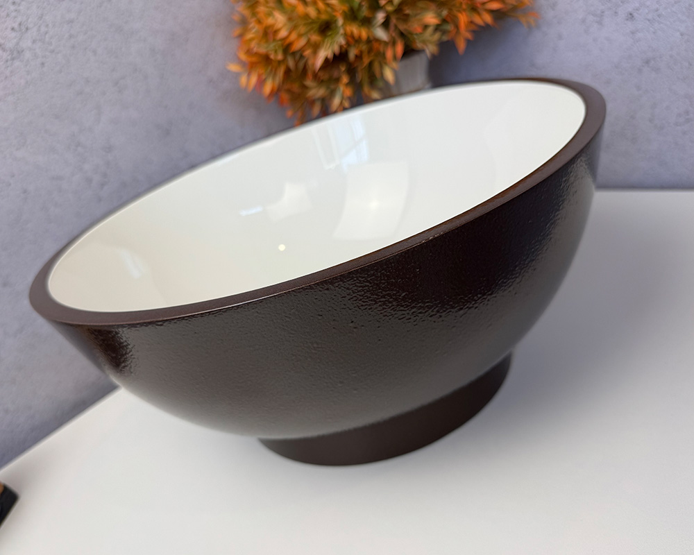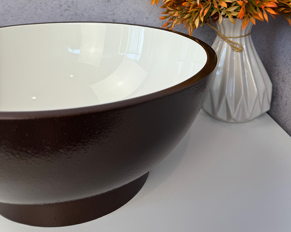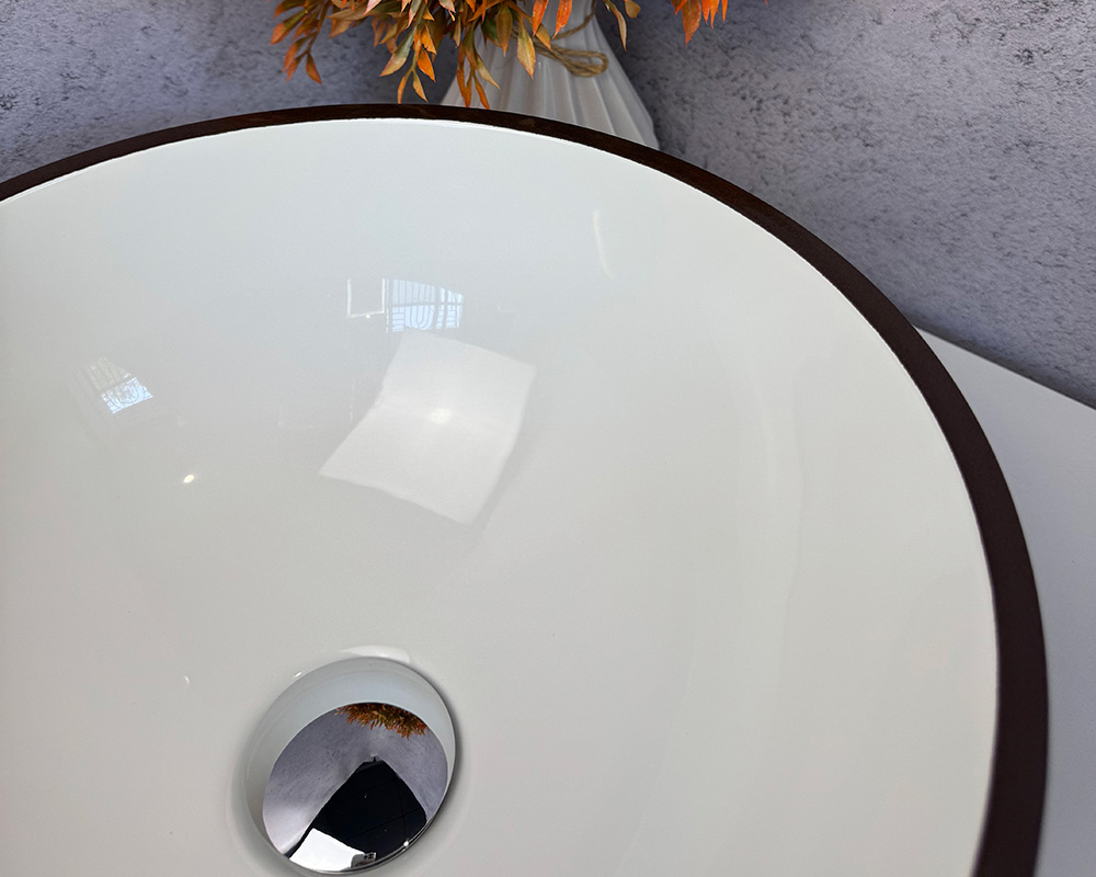 Умивальник має зовнішню поверхню та облямівку темно-коричневого кольору, а внутрішня частина – біла, глянцева. Такий контраст робить його стильним і сучасним.