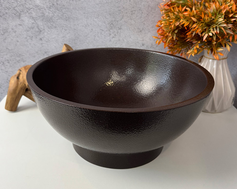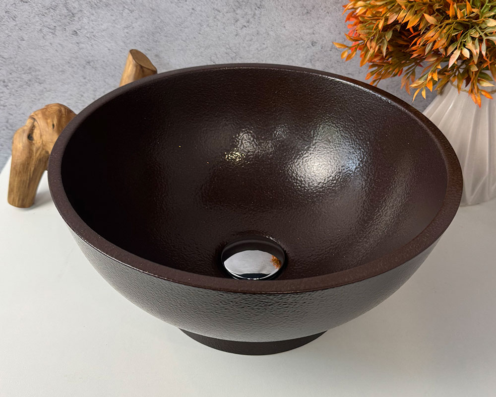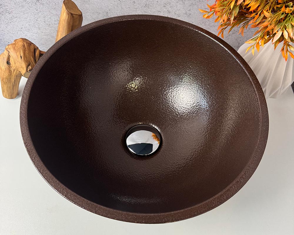 Умивальник виконаний у глибокому матовому шоколадному кольорі, який нагадує колір темного какао або натурального дерева венге.