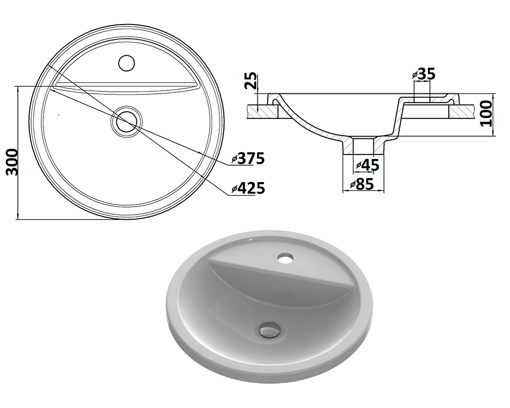 Круглий врізний умивальник «Терра» — це лаконічне і досконале рішення для ванної кімнати, виглядає він органічно і чудово у будь-якому інтер'єрі. Такий умивальник стане прекрасним доповненням ванної кімнати і в класичному стилі, і для більше нестандартних підходів в дизайні. В умивальнику «Терра» присутня надійність, естетичність, функціональність і практичність.