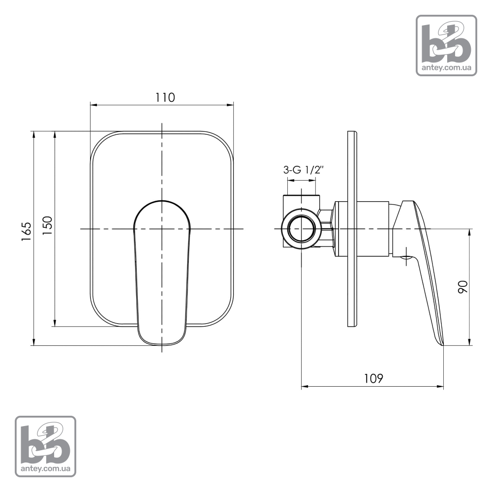 | Вид сантехничного виробу | вбудований змішувач для душа |